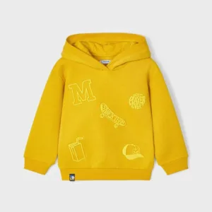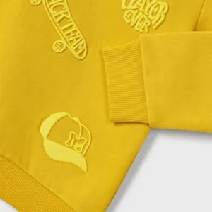 Pullover for boys. Pullover with embossed details. Model with hood.