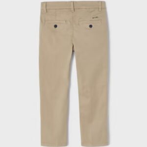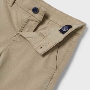 Chino style pants for boy with a skinny fit to define the figure without losing elegance. Zip and button to fasten. Adjustable elastic waistband with buttons inside the waistband for a better fit. Comfortable and resistant twill fabric. Functional pockets on the front and back of the item.Â