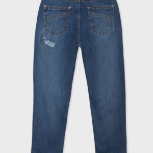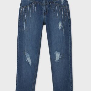 These Slouchy long trousers with high waist, loose in the hips and narrower as it goes down to the ankle. Very versatile line for any relaxed and comfortable look. Zip and button to fasten. Adjustable elasticated waistband to fit the waistline perfectly. Made from comfortable denim fabric, perfect for everyday looks.
