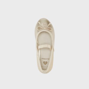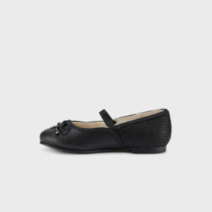 Elegant, feminine ballerina pumps for Girls. This will be the finishing touch for all of their most special outfits. Shoes with inner lining and leather insole. Non-slip and flexible rubber sole. Adjustable velcro strap which guarantees a perfect fit. Decorative elements: bow applique, sequins.