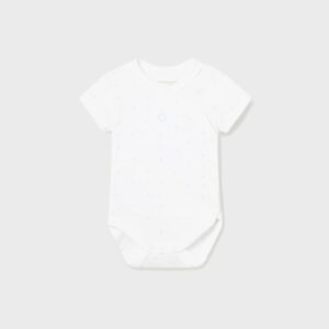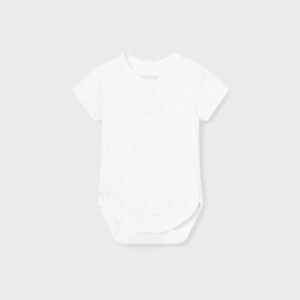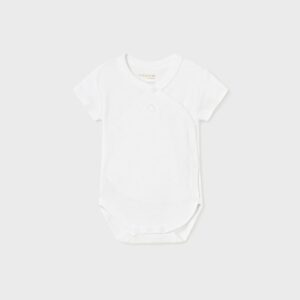 ECOFRIENDS garment 100% sustainable cotton. Short sleeved bodysuits for newborn. Crossover neckline and full side slit that closes with snap buttons to make it easy to put the bodysuit on.