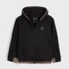 Long sleeved Sweatshirt for boy aged 8 to 16 years. Bardot neckline. Collar with hood. Front, central zip fastening. Made using lightweight, breathable fabric which is comfortable to wear.