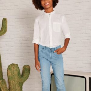 Adjustable elastic with buttons on the inside of the waistband for a better fit. Made from comfortable denim fabric, perfect for everyday looks.
