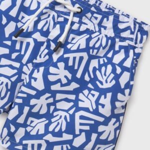Contains recycled polyester. Short dungarees for boy. Waistband with adjustable drawstring. Elastic, flowing fabric for maximum comfort on a day to day basis. Functional back pocket. Patterned design.