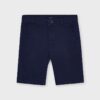 Bermuda shorts for boy. Elasticated waistband with zip and button to fasten. Made from comfortable and resistant twill fabric. Design with multiple pockets. Plain design.