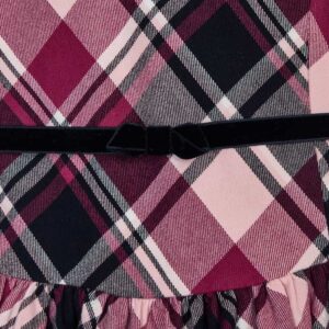 Short sleeved dress for girl aged 2 to 9 years. Round neckline. Opening on the back with an invisible zip. Made from comfortable knitted fabric. Gathered design. Removable velvet belt. Checked pattern.