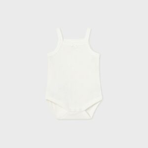 ECOFRIENDS garment 100% sustainable cotton. Bodysuit with braces for newborn. Snap button fastening at crotch for easy dressing. Decorative elements: bow applique.