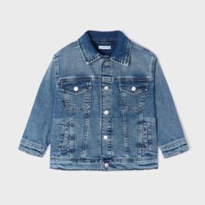ECOFRIENDS garment, contains sustainable cotton. Long sleeved jacket for boy. Shirt collar. Button fastenings down the front. Made from comfortable denim fabric, perfect for everyday looks. Functional front pockets.