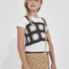 Top with braces for girl. Design with a decorative ruffle at the bottom of the item. Decorative elements: bow applique.