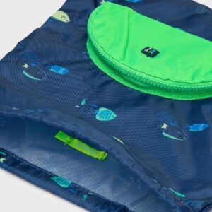 Backpack model bag with pocket application on the lower part with zip opening. Composition: 100% Polyester Mayoral