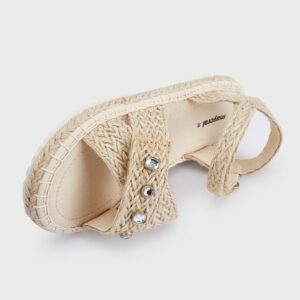 Summer sandals for girls which will dress their feet on hot days. Breathable cotton insole. Comfortable combined sole of 100% natural braided jute with non-slip rubber. Adjustable double Velcro fastenings for a quick fit and easy adjustment. All our shoes are made with chemical-free trimmings.Â