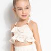 Dress with braces for girl. Round neckline. Zip fastening on the back for a quick fit. Designed with opening on the back. Decorative elements: decorative button, sequins. For safety reasons, the smaller sizes (2-3 years) may have some variations in the decorative elements used in the design.