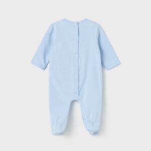 ECOFRIENDS garment, contains sustainable cotton Long sleeve pajamas for newborn. Snap button fastening on the back to allow the garment to be put on easily. Snap button closure at crotch for easy putting on and taking off. Design with delicate children’s motifs.