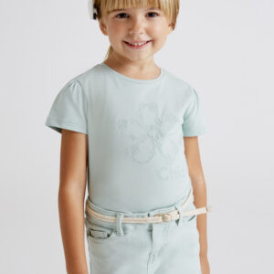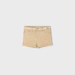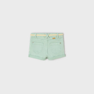 Shorts for girls. Adjustable elasticated waistband to fit the waistline perfectly. Made from comfortable and resistant twill fabric. Upturned hem. Detachable belt. Functional pockets on the front and back of the item. This item has a special tinting which means that its finish may not be uniform or that the colour may vary with the washings.