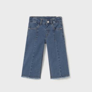 Baby flared pants, wide at the hem. Single-button closure. Adjustable elastic waistband with interior buttons for a better fit. Frayed hem. Comfortable and versatile denim fabric for everyday looks.