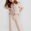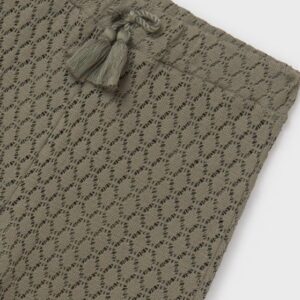 Trousers for girl. Elasticated waistband. Elastic, flowing fabric for maximum comfort on a day to day basis. Decorative elements: openwork details.