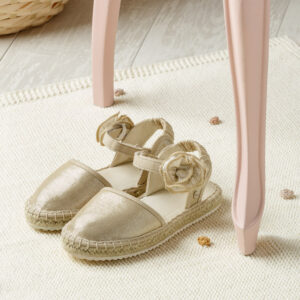 Espadrille style sandals for baby girl that perfectly complete a fun, casual outfit. Shoes with inner lining and breathable cotton insole. Sole with mix of plaited esparto grass and non-slip rubber. Adjustable velcro strap which guarantees a perfect fit.