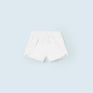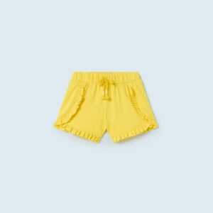 ECOFRIENDS garment, contains sustainable cotton. Shorts for baby. Elasticated waistband for a better fit. Decorative elements: bow applique, decorative ruffles.