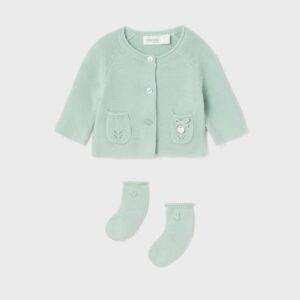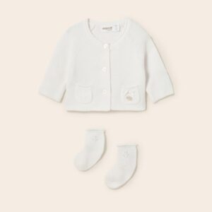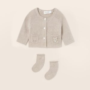 ECOFRIENDS garment, contains sustainable cotton. Original two-piece set for newborn.