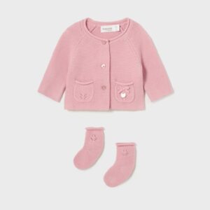 Long sleeved cardigan for newborn. Button fastenings down the front.