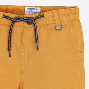 Bermuda shorts for boy. Single button fastening. Elasticated waistband with adjustable drawstring. Fresh and contemporary fabric with linen. Functional pockets on the front and back of the item. For safety reasons, the smaller sizes (2-5 years) have a false fly rather than a zipper. This item has a special tinting which means that its finish may not be uniform or that the color may vary with the washings.
