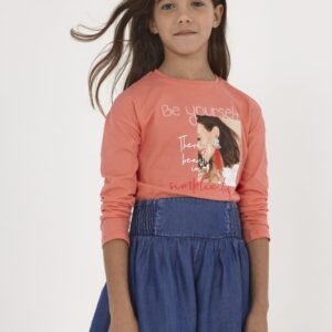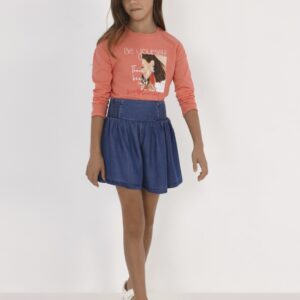 ECOFRIENDS garment, 100% TENCEL TM Lyocell. Comfortable skort for girl. Elasticated waistband for a better fit. This model has honeycomb detailing.
