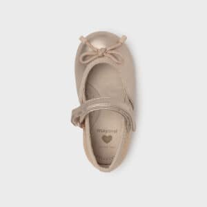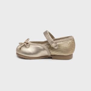 Elegant, feminine ballerina pumps for Girls. This will be the finishing touch for all of their most special outfits. Shoes with inner lining and leather insole. Non-slip, flexible rubber sole for a comfortable step. Adjustable velcro strap which guarantees a perfect fit. Decorative elements: bow applique, sequins.