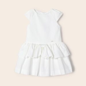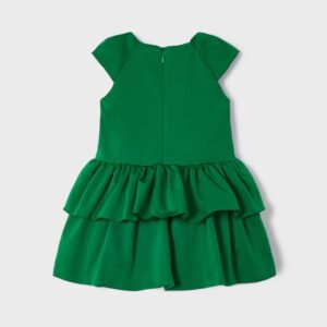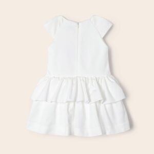 Short sleeved dress for girl. Round neckline. Zip fastening on the back for a quick fit. Decorative elements: bow applique.