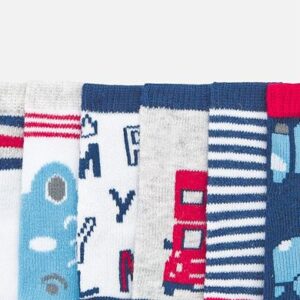 Set of six pairs of socks for newborn baby. Made with soft elasticated cotton fabric. Patterned design. This item comes presented in a box from the Newborn collection, ideal to be given as a gift on special occasions.