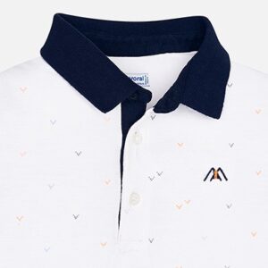 Short sleeved polo shirt. Classic polo neck collar. Made from 100% cotton fabric. Decorative elements: embroidery.