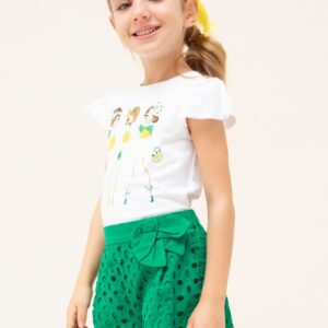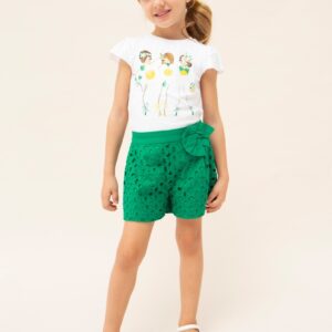 Shorts for girl. Elasticated waistband for a better fit. Made from 100% cotton fabric. Decorative elements: bow applique.