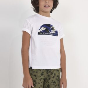 ECOFRIENDS garment 100% sustainable cotton. Bermuda shorts for boy. Waistband with adjustable inner drawstring. Patterned design.