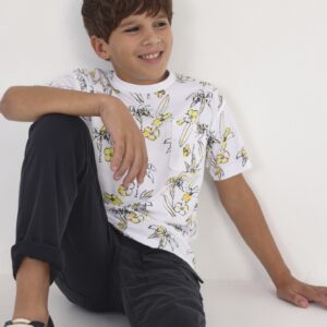 ECOFRIENDS garment 100% sustainable cotton. Short sleeved T-shirt for boy. Round neckline. Patterned design.