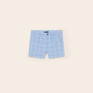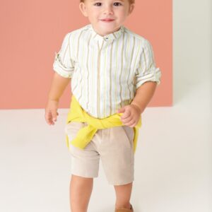 Bermuda shorts for baby. Single button fastening. Fresh and contemporary fabric with linen. Functional pockets on the front and back of the item.
