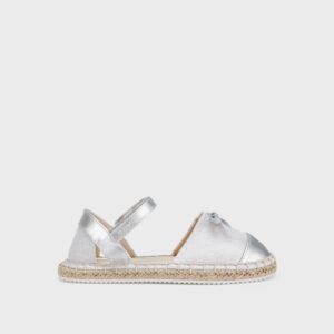 Semi-open ballet flats shoes for girls with a feminine and elegant style. Textile outer material. Comfortable combined sole of 100% natural braided jute with non-slip rubber. Adjustable Velcro strap which guarantees a perfect fit.