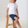 Short sleeved blouse with ruffled detailing for girl. Square collar. Made from 100% cotton fabric. Design with a decorative ruffle at the bottom of the item. Decorative elements: bow applique.