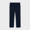 Chino style trousers for boy aged 2 to 9 years with a skinny, elegant fit. Item from our basic collection with classic design, ideal for completing any set or look. Single button fastening. Adjustable elasticated waistband to fit the waistline perfectly. Made from comfortable and resistant twill fabric. Functional pockets on the front and back of the item.