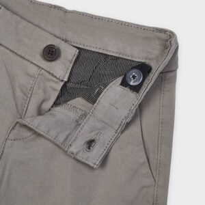 Chino style trousers for boy aged 2 to 9 years with a skinny, elegant fit. Item from our basic collection with classic design, ideal for completing any set or look. Single button fastening. Adjustable elasticated waistband to fit the waistline perfectly. Made from comfortable and resistant twill fabric. Functional pockets on the front and back of the item.