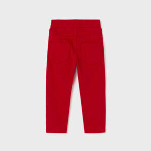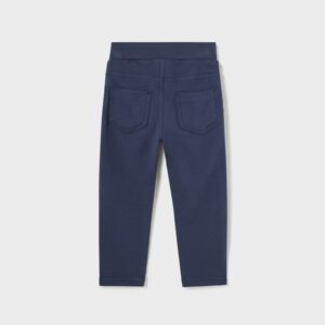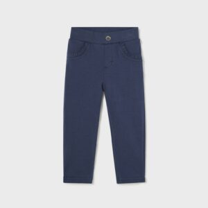 Long trousers for baby of our tightest line. Elasticated waistband for a better fit. Made from soft elasticated cotton fabric. Mock, decorative front pockets. Decorative elements: decorative button.