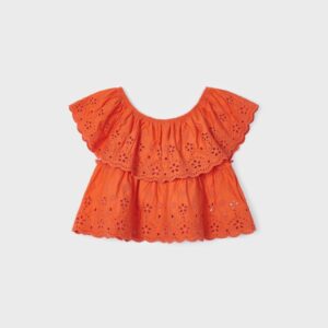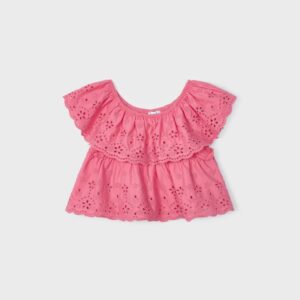 ECOFRIENDS garment 100% sustainable cotton. Short sleeved blouse for girl. Round neckline. Decorative elements: embroidery.