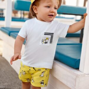 ECOFRIENDS garment 100% sustainable cotton. Short sleeved T-shirt for baby. Round neckline. Functional front pocket.