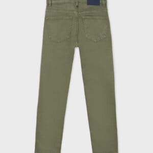 Slim fit trousers for Older boy 8 to 16 years which fit well to the figure. Zip and button to fasten. Adjustable elasticated waistband to fit the waistline perfectly. Made from soft elasticated cotton fabric.