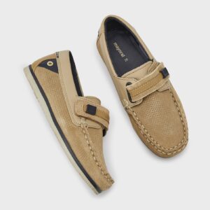 Versatile boat shoes for boy that can be combined with all types of outfits and looks. Shoes with inner lining and leather insole. Outer leather lining. All our shoes are made from chrome-free leather. Non-slip and flexible rubber sole. Adjustable Velcro strap which guarantees a perfect fit. Leather reinforcement on the inside of the heel ensures better support.