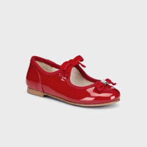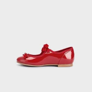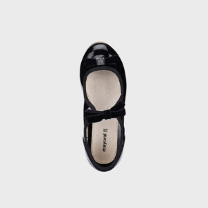 Elegant, feminine ballerina pumps for Older girls. This will be the finishing touch for all of their most special outfits. Shoes with inner lining and leather insole. Patent leather outer material. Non-slip, flexible rubber sole for a comfortable step. Footwear with elastic detailing which allows a quick and easy fit. Decorative elements: bow applique.Â