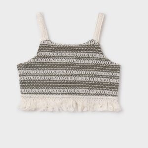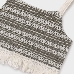Strappy top for girl. Side fastening with press studs. Decorative elements: Tassels, Crochet details.