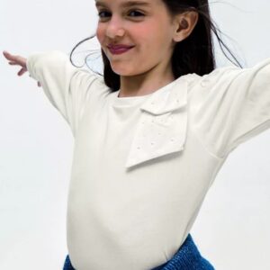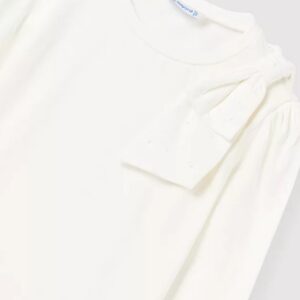 Mayoral Tween Girl Pearl Bow Long Sleeve Shirt- CrudoÂ