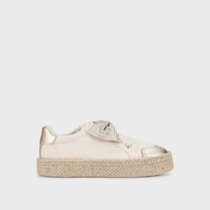 Sporty shoes for girl, highly versatile for their daily adventures. Linen outer material combined with other textile materials. Shoes with inner lining and breathable cotton insole. Non-slip and flexible rubber sole. Side zip fastening for a quick, simple fit. All our shoes are made with chemical-free trimmings.