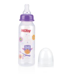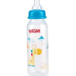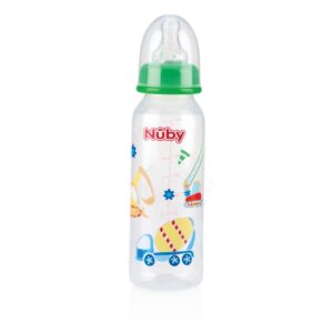 This Nuby Feeding bottle is available in 4 different colors and designs. With a measuring scale on the bottle. Contents: 220 ml. In clam shell packaging. Measurements: 5 x 19 x 5 cm.