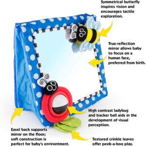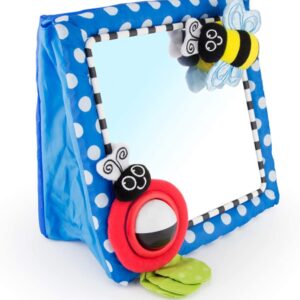 Bold, red ladybug attracts baby’s developing visual skills. Rotating/clicking bee engages growing baby.