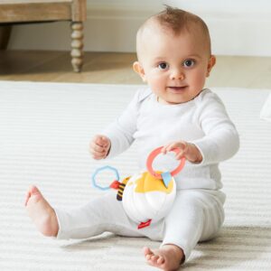 Keep your busy bee entertained with our buzz-worthy beehive stroller toy. Soft and plush to the touch, just pull the ring to wake-up the honey bee and shake-up the hive. Attach it to your stroller and keep baby smiling wherever you go. Perfect for at-home play, too!